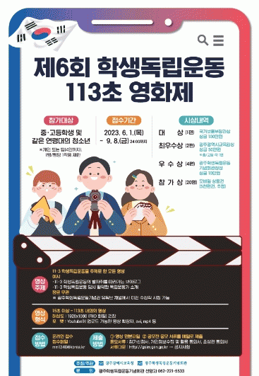 [¹Ìµð¾îÀü³² Á¦°¥´ëÁ¾ ±âÀÚ]±¤ÁÖÇлýµ¶¸³¿îµ¿±â³äȸ°üÀÌ ¿À´Â 1ÀÏ Çлýµ¶¸³¿îµ¿¿¡ °üÇÑ °ü½É Á¦°í¿Í ½ÇõÀû ¿ª»çÀÇ½Ä È®´ë¸¦ À§ÇØ ¡®Çлýµ¶¸³¿îµ¿ 113ÃÊ ¿µÈÁ¦¡¯ °ø¸ð Á¢¼ö¸¦ ½ÃÀÛÇÑ´Ù. 31ÀÏ Çлýµ¶¸³¿îµ¿±â³äȸ°ü¿¡ µû¸£¸é À̹ø ¿µÈÁ¦¡¦