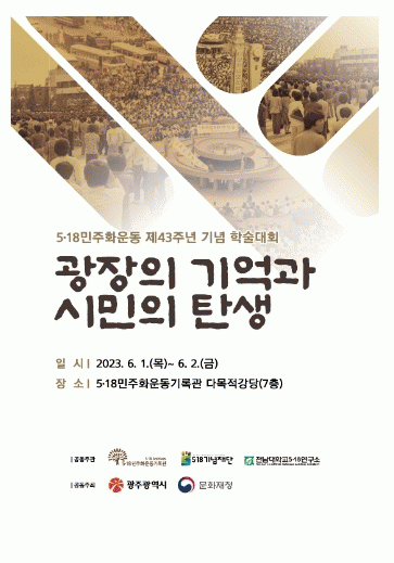 [¹Ìµð¾îÀü³² Á¦°¥´ëÁ¾ ±âÀÚ]5¡¤18¹ÎÁÖȿ±â·Ï°üÀº ¿À´Â 6¿ù 1~2ÀÏ ±â·Ï°ü 7Ãþ ´Ù¸ñÀû°´ç¿¡¼ ¡®5¡¤18 Á¦43Áֳ⠱â³ä Çмú´ëȸ¡¯¸¦ °³ÃÖÇÑ´Ù. À̹ø Çмú´ëȸ´Â ¡®±¤ÀåÀÇ ±â¾ï, ½Ã¹ÎÀÇ Åº»ý¡¯À̶ó´Â ÁÖÁ¦·Î ¿¸°´Ù. ù° ³¯¿¡´Â 5¡¤1¡¦