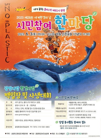 [¹Ìµð¾îÀü³² ÀÓ¼º¿Ï ±âÀÚ]±¤¾ç½Ã´Â ¼¼°è ȯ°æÀÇ ³¯(6¿ù 5ÀÏ)À» ¸Â¾Æ ¿À´Â 6¿ù 3ÀÏ ¸¶µ¿±Ù¸°Ã¼À°°ø¿ø¿¡¼ ¡®Á¦28ȸ ȯ°æÀÇ ³¯ ±â³äÇà»ç¡¯¸¦ °³ÃÖÇÑ´Ù°í ¹àÇû´Ù. ±â³äÇà»ç´Â ¡®³»°¡ ²Þ²Ù´Â ÇÃ¶ó½ºÆ½ Á¦·Îµµ½Ã ±¤¾ç¡¯À» ÁÖÁ¦·Î 15°³ÀÇ È¯°æ¡¦