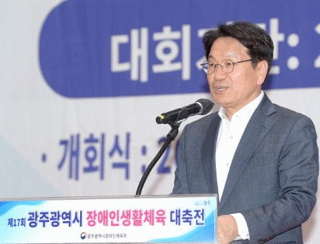 [¹Ìµð¾îÀü³² Á¦°¥´ëÁ¾ ±âÀÚ]±¤ÁÖ±¤¿ª½ÃÀå¾ÖÀÎüÀ°È¸ÀåÀÎ °±âÁ¤ ±¤ÁÖ±¤¿ª½ÃÀåÀº 25ÀÏ ±¤ÁÖÀå¾ÖÀα¹¹ÎüÀ°¼¾ÅÍ¿¡¼ ¿¸° Á¦17ȸ ±¤ÁÖ±¤¿ª½Ã Àå¾ÖÀλýȰüÀ°´ëÃàÀü °³È¸½Ä¿¡ Âü¼®, ¼±¼ö´ÜÀ» °Ý·ÁÇß´Ù. °³È¸½Ä¿¡´Â °±âÁ¤ ½ÃÀåÀ» ºñ·ÔÇØ ÀÌ¡¦