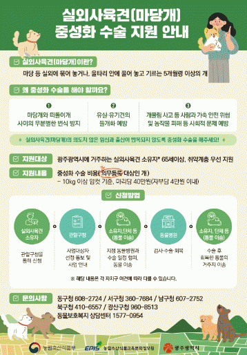 [¹Ìµð¾îÀü³² Á¦°¥´ëÁ¾ ±âÀÚ]±¤ÁÖ±¤¿ª½Ã´Â 5°³ ÀÚÄ¡±¸¿Í ÇÔ²² ¡®½Ç¿Ü»çÀ°°ß Áß¼ºÈ¼ö¼ú Áö¿ø»ç¾÷¡¯À» ½ÃÇàÇÑ´Ù. ÀÌ »ç¾÷Àº ½Ç¿Ü»çÀ°°ß(¸¶´ç°³)ÀÇ ¹«ºÐº°ÇÑ ¹ø½Ä ¹æÁö, À¯½Ç¡¤À¯±â°ßÀÇ µé°³È ¿¹¹æ, °³¹°¸² »ç°í µî »ç¶÷°ú µ¿¹°ÀÇ ¾ÈÀü À§¡¦