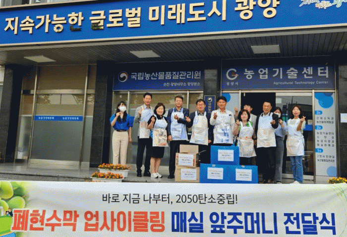 [¹Ìµð¾îÀü³² ÀÓ¼º¿Ï ±âÀÚ]±¤¾ç½Ã´Â ±¤¾ç±âÈÄȯ°æ³×Æ®¿öÅ©°¡ ¸Å½Ç ¼öÈ®±â¸¦ ¾ÕµÎ°í 22ÀÏ ³ó¾÷±â¼ú¼¾Å͸¦ ¹æ¹®ÇØ ÆóÇö¼ö¸·À» »õȰ¿ë(up-cycling)ÇÑ ¸Å½Ç ¼öÈ®¿ë ¾ÕÄ¡¸¶ 300ÀåÀ» Àü´ÞÇß´Ù°í ¹àÇû´Ù. À̳¯ Àü´ÞÇÑ ¾ÕÄ¡¸¶´Â µµ½Ã ¹Ì°üÀ» ÀúÇØ¡¦