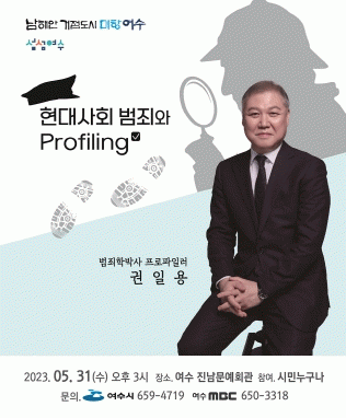 [¹Ìµð¾îÀü³² ÀüÇü¼º ±âÀÚ]¿©¼ö Áø³²¹®¿¹È¸°ü¿¡¼ ¿À´Â 31ÀÏ ¿ÀÈÄ 3½Ã ¹üÁËÇйڻç ÇÁ·ÎÆÄÀÏ·¯ ±ÇÀÏ¿ë ÃÊû, ¡®5¿ù ¿©¼ö¾ÆÄ«µ¥¹Ì ½Ã¹Î±³¾ç°Á¡¯°¡ ¿¸°´Ù. À̹ø °¿¬¿¡¼ ±ÇÀÏ¿ë °»ç´Â ¡®Çö´ë»çȸ ¹üÁË¿Í ÇÁ·ÎÆÄÀϸµ¡¯À̶ó´Â ÁÖÁ¦·Î »ý¡¦