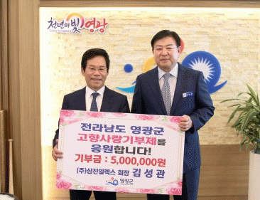 [¹Ìµð¾îÀü³² Á¦°¥´ëÁ¾ ±âÀÚ]¢ß»ïÁøÀÏ·º½º ±è¼º°ü ȸÀåÀÌ Áö³ 19ÀÏ ¿µ±¤±ºÀ» ¹æ¹®ÇÏ¿© °íÇâ»ç¶û±âºÎ±Ý ÃÖ°í¾×ÀÎ 5¹é¸¸ ¿øÀ» ±âºÎÇÏ¿© °íÇâ¿¡ ¿ÂÁ¤ÀÇ ¸¶À½À» ÀüÇß´Ù. ¼³¸³ 40³â°¸¦ ¸ÂÀÌÇÑ ¢ß»ïÁøÀÏ·º½º´Â ÀϹÝÀü±â °ø»ç¾÷À» ÁÖ ¾÷Á¾À¸·Î¡¦