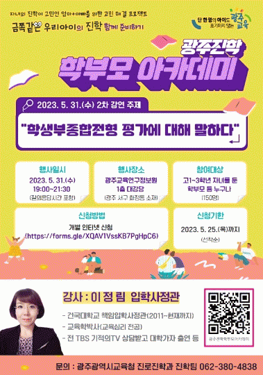 [¹Ìµð¾îÀü³² Á¦°¥´ëÁ¾ ±âÀÚ]±¤Áֽñ³À°Ã»ÀÌ ¿À´Â 31ÀÏ ±¤ÁÖ±³À°¿¬±¸Á¤º¸¿ø¿¡¼ ¡®ÇлýºÎÁ¾ÇÕÀüÇü Æò°¡¿¡ ´ëÇØ ¸»ÇÏ´Ù¡¯¶ó´Â ÁÖÁ¦·Î Á¦2Â÷ ±¤ÁÖÁøÇÐ ÇÐºÎ¸ð ¾ÆÄ«µ¥¹Ì Ư°À» °³ÃÖÇÑ´Ù. 23ÀÏ ½Ã±³À°Ã»¿¡ µû¸£¸é ¡®±¤ÁÖÁøÇÐ ÇÐºÎ¸ð ¾ÆÄ«µ¥¡¦