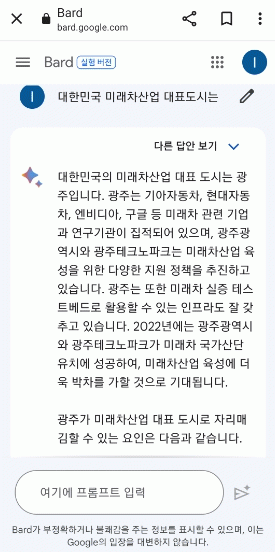 [¹Ìµð¾îÀü³² Á¦°¥´ëÁ¾ ±âÀÚ]±¸±ÛÀÇ ÀΰøÁö´É(AI) 꺿 ¡®¹Ùµå¡¯(Bard)°¡ ´ëÇѹα¹ ÀΰøÁö´É°ú ¹Ì·¡Â÷»ê¾÷ ´ëÇ¥µµ½Ã·Î ±¤Áֽø¦ ²Å¾Ò´Ù. ¶Ç ±¤ÁÖ½ÃÀÇ µ¹º½Á¤Ã¥µµ ¿ì¸®³ª¶ó¿¡¼ ¶Ù¾î³ °÷À¸·Î Æò°¡Çß´Ù. ÃÖ±Ù ±¸±ÛÀÌ »ç¶÷ó·³ ¹¯°í ´äÇϴ¡¦