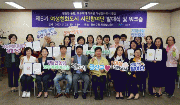 [¹Ìµð¾îÀü³² ±èÁ¤¿ì ±âÀÚ]±¤ÁÖ ±¤»ê±¸´Â 22ÀÏ ¡®ÆòµîÇÑ µ¿Çà, ¸ðµÎ¿¡°Ô ÀÌ·Î¿î ¿©¼ºÄ£Èµµ½Ã ±¤»ê¡¯ ±¸Çö¿¡ ¾ÕÀå ¼³ Á¦5±â ¿©¼ºÄ£Èµµ½Ã ½Ã¹ÎÂü¿©´Ü ¹ß´ë½ÄÀ» °³ÃÖÇß´Ù. À̳¯ ¹ß´ë½Ä¿¡¼´Â Áö³ 4¿ù °ø°³¸ðÁýÀ» ÅëÇØ À§ÃËµÈ 28¸íÀÇ Á¦5±â¡¦