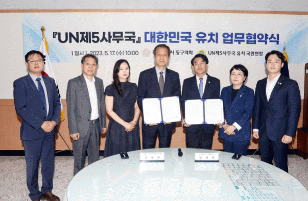[¹Ìµð¾îÀü³² ±èÁ¤¿ì ±âÀÚ]±¤ÁÖ µ¿±¸ÀÇȸ´Â UNÁ¦5»ç¹«±¹À¯Ä¡±¹¹Î¿¬ÇÕ(´ëÇ¥ ¼½Ö¿ø)°ú µ¿±¸ÀÇȸ¿¡¼ UNÁ¦5»ç¹«±¹ ´ëÇѹα¹ À¯Ä¡¸¦ À§ÇÑ ¾÷¹«Çù¾à(MOU)¸¦ ü°áÇß´Ù°í 22ÀÏ ¹àÇû´Ù. À̳¯ Çù¾à½Ä¿¡´Â µ¿±¸ÀÇȸ ±èÀç½Ä ÀÇÀåÀ» ºñ·ÔÇØ UNÁ¦5»ç¹«¡¦