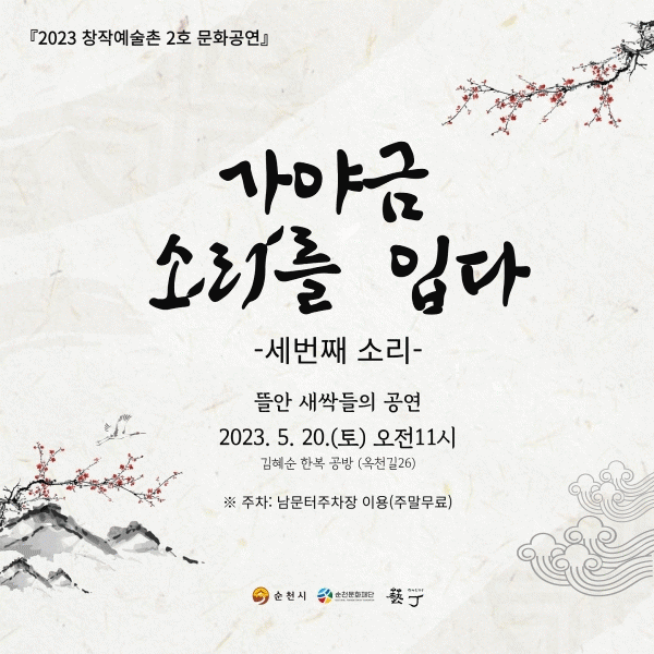 [¹Ìµð¾îÀü³² ÀÓ¼º¿Ï ±âÀÚ] ¼øÃµ¹®ÈÀç´ÜÀÌ ¼öŹ ¿î¿µÇÏ´Â ¼øÃµ âÀÛ¿¹¼úÃÌ 2È£ ±èÇý¼ø ÇѺ¹°ø¹æÀÌ ¿À´Â 20ÀÏ ¡®°¡¾ß±Ý ¼Ò¸®¸¦ ÀÔ´Ù¡¯¸¦ ÁÖÁ¦·Î ¾î¸°ÀÌ ±¹¾Ç°ø¿¬À» °³ÃÖÇÑ´Ù. ¿ÃÇØ·Î ¼¼ ¹øÂ°¸¦ ¸ÂÀÌÇÑ ¡®°¡¾ß±Ý, ¼Ò¸®¸¦ ÀÔ´Ù¡¯¾î¸°ÀÌ ±¹¡¦