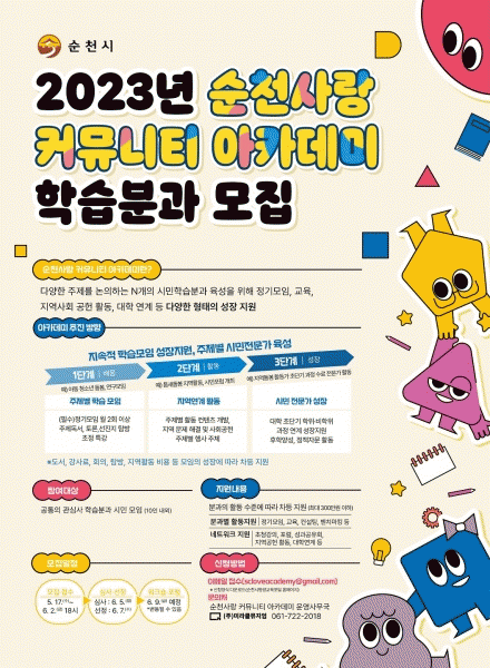 [¹Ìµð¾îÀü³² ÀÓ¼º¿Ï ±âÀÚ] ¼øÃµ½Ã´Â ´Ù¾çÇÑ ÁÖÁ¦¸¦ ³íÀÇÇÏ´Â N°³ÀÇ ½Ã¹ÎÇнÀºÐ°ú Áö¿ø°ú À°¼ºÀ» À§ÇØ ¿À´Â 6¿ù 2ÀϱîÁö °øÅëÀÇ °ü½É ÁÖÁ¦¸¦ °¡Áø ½Ã¹ÎÇнÀºÐ°ú¸¦ ¸ðÁýÇÑ´Ù. ÇнÀºÐ°ú´Â 10ÀÎ ³»¿Ü·Î ±¸¼ºµÈ ½Ã¹Î¸ðÀÓÀ̾î¾ß ÇÏ¸ç ½ÅûÀº ½Å¡¦