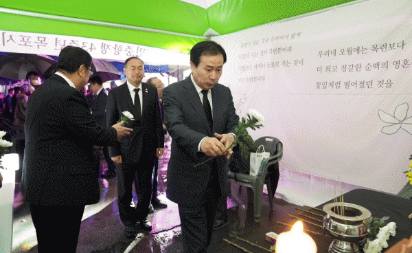 [¹Ìµð¾îÀü³² °í±Ô¼® ±âÀÚ] 5.18¹ÎÁßÇ×Àï ¸ñÆ÷Çà»çÀ§¿øÈ¸°¡ Áö³ 18ÀÏ ¸ñÆ÷¿ª ±¤Àå¿¡¼ ¡®¿À¿ùÀÇ Á¤½ÅÀ», ¿À¿ùÀÇ Á¤ÀǷΡ¯¶ó´Â ÁÖÁ¦·Î Á¦43Áֳ⠱â³ä½ÄÀ» °³ÃÖÇß´Ù. ±â³ä½ÄÀº ¹ÚÈ«·ü ¸ñÆ÷½ÃÀå, ÇѺÀö ¸ñÆ÷5.18¹ÎÁßÇ×Àï 43ÁÖ³â Çà»çÀ§¿øÀ塦