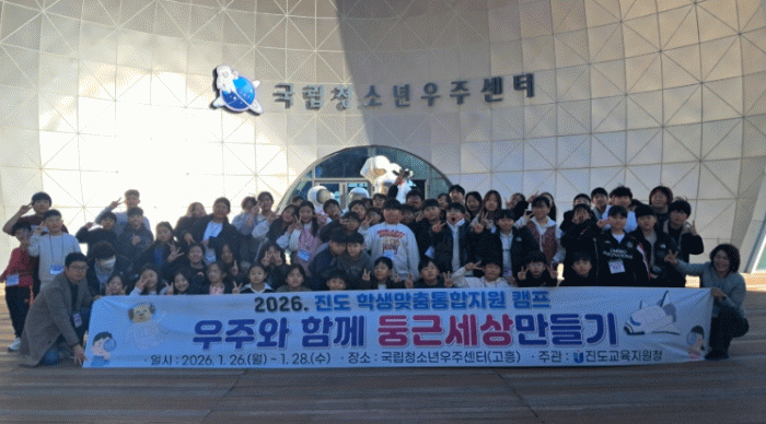 [¹Ìµð¾îÀü³² Á¦°¥´ëÁ¾ ±âÀÚ]Áøµµ±³À°Áö¿øÃ»Àº 1¿ù 26ÀϺÎÅÍ 28ÀϱîÁö °ü³» ÃÊ¡¤ÁßÇлý 60¸íÀ» ´ë»óÀ¸·Î ±¹¸³Ã»¼Ò³â¿ìÁÖ¼¾ÅÍ¿¡¼ 'Çлý¸ÂÃãÅëÇÕÁö¿ø ¿ìÁÖüÇè ÇöÀåüÇèÇнÀ'À» ¿î¿µÇß´Ù. À̹ø üÇèÇнÀÀº ¿ìÁÖ°úÇп¡ ´ëÇÑ ÇлýµéÀÇ Èï¹Ì¡¦