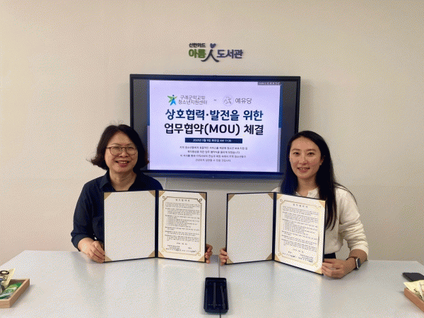 [¹Ìµð¾îÀü³² Á¦°¥´ëÁ¾ ±âÀÚ] ±¸·Ê±ºÇб³¹Ûû¼Ò³âÁö¿ø¼¾ÅÍ´Â Áö³ 9ÀÏ °ü³» û¼Ò³â°ú Çб³ ¹Û û¼Ò³âÀÌ Á¶Çâ»ç¿¡ ´ëÇÑ Á÷¾÷Àû Ư¼ºÀ» ¹è¿ì°í üÇèÇÒ ¼ö ÀÖµµ·Ï ¿¹À¯´ç°ú ¾÷¹«Çù¾àÀ» ü°áÇß´Ù°í ¹àÇû´Ù. Çù¾àÀ» ü°áÇÑ ¿¹À¯´çÀº Á¶Ç⿬±¸¼Ò¡¦