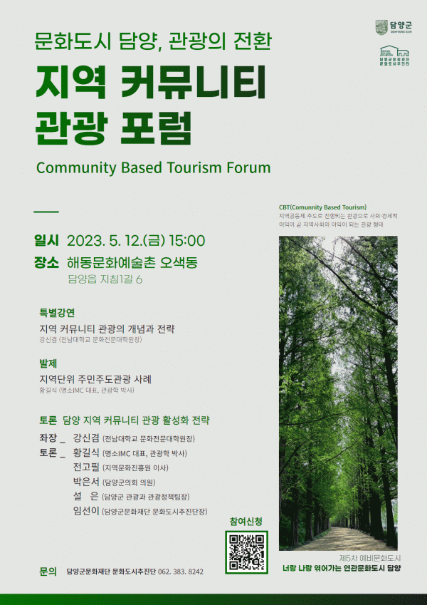 [¹Ìµð¾îÀü³² Á¦°¥´ëÁ¾ ±âÀÚ] ´ã¾ç±º¹®ÈÀç´ÜÀÌ 12ÀÏ ¹®Èµµ½Ã ´ã¾ç ¿¬°èÀÇ ¡®Áö¿ª Ä¿¹Â´ÏƼ °ü±¤ Æ÷·³¡¯À» °³ÃÖÇÑ´Ù. À̹ø Æ÷·³Àº ´ã¾çÀÇ ¹®È ÀÚ¿øÀ» Ȱ¿ëÇÑ Áö¼Ó°¡´ÉÇÑ °ü±¤ Ȱ¼ºÈ Àü·«À» ¸ð»öÇϱâ À§ÇØ ´ã¾ç±º¹®ÈÀç´Ü ¹®Èµµ½ÃÃßÁø¡¦