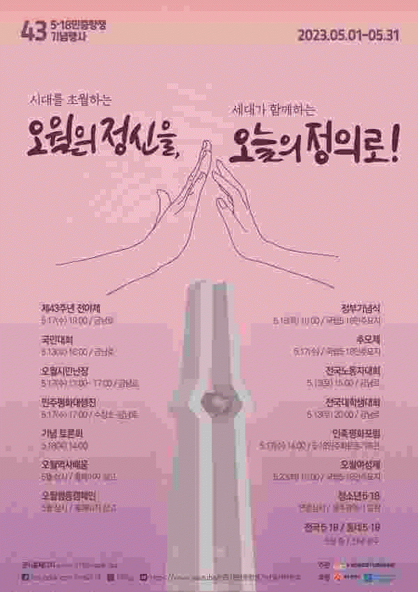 [¹Ìµð¾îÀü³² Á¦°¥´ëÁ¾ ±âÀÚ] Á¦43ÁÖ³â 5¡¤18¹ÎÁÖȿ ±â³äÇà»ç°¡ ½Ã¹Î, ´ëÇлý, ¼¼°è¹ÎÁÖÁÖÀÇ¡¤Àαǿ°¡µéÀÌ ´ë°Å Âü¿©ÇÑ °¡¿îµ¥ ´Ùä·Ó°Ô ÆîÃÄÁø´Ù. 62°³ Âü°¡´Üü·Î ±¸¼ºµÈ ¡®Á¦43ÁÖ³â 5¡¤18¹ÎÁßÇ×Àï±â³äÇà»çÀ§¿øÈ¸¡¯´Â Áö³ 3¿ù ¡¦