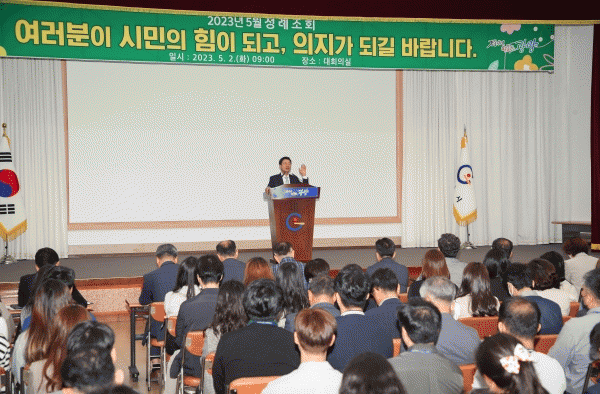 [¹Ìµð¾îÀü³² ÀÓ¼º¿Ï ±âÀÚ] Á¤ÀÎÈ ±¤¾ç½ÃÀåÀº 2ÀÏ ½Ãû ´ëȸÀǽǿ¡¼ 2023³â 5¿ù Á¤·Ê Á¶È¸¸¦ °³ÃÖÇß´Ù. À̳¯ Á¶È¸¿¡¼ Á¤ ½ÃÀåÀº ½ÃÁ¤¹ßÀü À¯°ø Á÷¿ø 15¸í¿¡°Ô ǥâÀåÀ» ¼ö¿©ÇÏ¸ç ¸ÃÀº¹Ù ¾÷¹«¸¦ ¼º½ÇÈ÷ ÃßÁøÇØÁØ Á¡¿¡ ´ëÇÑ °í¸¶¿òÀ» ¡¦