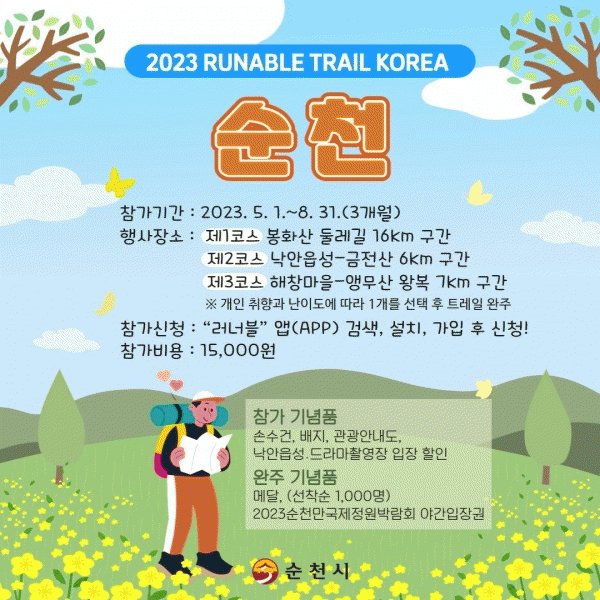 [¹Ìµð¾îÀü³² ÀÓ¼º¿Ï ±âÀÚ] ¼øÃµ½Ã´Â ¿À´Â 5¿ù 1ÀϺÎÅÍ 8¿ù 31ÀϱîÁö 3°³ ÄÚ½º¿¡¼ ºñ´ë¸é Æ®·¹ÀÏ ÇÁ·Î±×·¥ÀÎ ¡®2023 Æ®·¹ÀÏÄÚ¸®¾Æ ¼øÃµ¡¯À» °³ÃÖÇÑ´Ù°í ¹àÇû´Ù. ÃÖ±Ù ÀþÀº ¼¼´ë°¡ ¼±È£Çϴ¡®Æ®·¹ÀÏ¡¯Àº ºñÆ÷ÀåÀÇ ±æÀ» °È´Â Ȱµ¿À¸·Î °Ç°¡¦