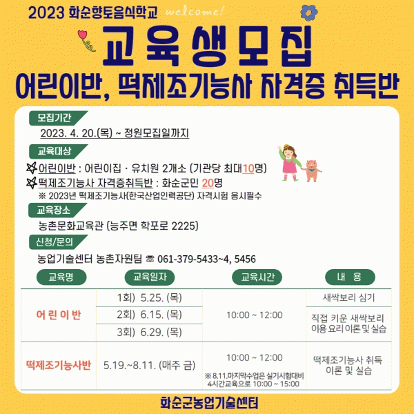 [¹Ìµð¾îÀü³² Á¦°¥´ëÁ¾ ±âÀÚ] ȼø±ºÀº ¿À´Â 20ÀÏ ºÎÅÍ 2023 ȼøÇâÅäÀ½½ÄÇб³ ¾î¸°À̹Ý, ¶±Á¦Á¶±â´É»ç¹Ý ±³À° ¼ö°»ýÀ» ¸ðÁýÇÑ´Ù°í ¹àÇû´Ù. ¾î¸°À̹ÝÀº ȼø±º ³» ¾î¸°ÀÌÁýÀ̳ª À¯Ä¡¿ø 2°³¼Ò·Î 5¿ù 25ÀϺÎÅÍ 6¿ù 29ÀϱîÁö ÃÑ 3ȸ, ±³À°¡¦