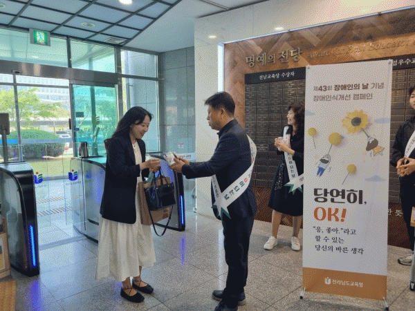 [¹Ìµð¾îÀü³² °í±Ô¼® ±âÀÚ] Àü¶ó³²µµ±³À°Ã»ÀÌ 20ÀÏ Á¦43ȸ Àå¾ÖÀÎÀÇ ³¯À» ¸Â¾Æ ¡®ÇÔ²² ±æÀ» ã´Ù, ÇÔ²² ±æÀ» °È´Ù¡¯¶ó´Â ÁÖÁ¦·Î ÀÏ»óÀû Àå¾Ö°ø°¨ ¹®È Á¤ÂøÀ» À§ ÇÑ Àå¾ÖÀνݳ¼± Ä·ÆäÀÎÀ» ½Ç½ÃÇß´Ù. ¹éµµÇö ±³À°±¹ÀåÀ» ºñ·ÔÇÑ µµ±³À°Ã»¡¦