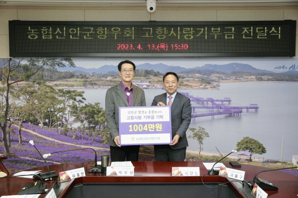[¹Ìµð¾îÀü³² °í±Ô¼® ±âÀÚ] ³óÇùÁß¾Óȸ ¹Úż± Á¶ÇÕ°¨»çÀ§¿øÀå°ú ³óÇù½Å¾È±ºÇâ¿ìȸ¿ø 8¸íÀº 13ÀÏ ½Å¾È±ºÃ»À» ã¾Æ 1004¸¸¿øÀ» ±âŹÇÏ¸ç °íÇâ»ç¶û±âºÎÁ¦¿¡ µ¿ÂüÇß´Ù. À̹ø °íÇâ»ç¶û±âºÎ±ÝÀº ½Å¾È±º Ãâ½Å ³óÇù ÀÓÁ÷¿ø 32¸íÀÌ Áö¿ª°æÁ¦ Ȱ¼º¡¦