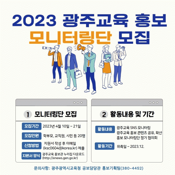 [¹Ìµð¾îÀü³² Á¦°¥´ëÁ¾ ±âÀÚ] ±¤Áֽñ³À°Ã»ÀÌ 10~21ÀÏ Çкθð, ½Ã¹ÎÀ» ´ë»óÀ¸·Î ¡®±¤ÁÖ±³À° È«º¸ ¸ð´ÏÅ͸µ´Ü¡¯À» ¸ðÁýÇÑ´Ù. 11ÀÏ ½Ã±³À°Ã»¿¡ µû¸£¸é ¡®±¤ÁÖ±³À° È«º¸ ¸ð´ÏÅ͸µ´Ü¡¯Àº ÃÑ 20¸íÀ¸·Î ±¸¼ºµÆÀ¸¸ç À§ÃË ÈÄ ¿ÃÇØ ¸»±îÁö Ȱµ¿Çϰԡ¦