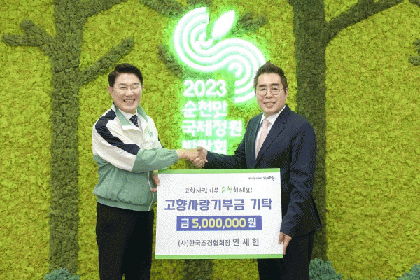 [¹Ìµð¾îÀü³² ÀÓ¼º¿Ï ±âÀÚ] Çѱ¹Á¶°æÇùȸ ¾È¼¼Çå ȸÀåÀÌ Áö³ 6ÀÏ ¼øÃµ½Ã¿¡ 5¹é¸¸¿øÀ» °íÇâ»ç¶û±âºÎ±ÝÀ¸·Î ±âŹÇß´Ù. À̹ø °íÇâ»ç¶û °í¾×±âºÎ ÁÖÀΰøÀÎ ¾È¼¼Çå ȸÀåÀº 2013³â¿¡ ¿¸° ¼øÃµ¸¸±¹Á¦Á¤¿ø¹Ú¶÷ȸÀå ¼³°è¸¦ ÃѰýÇϸç Á¤¿ø¹®È¸¦ ¡¦
