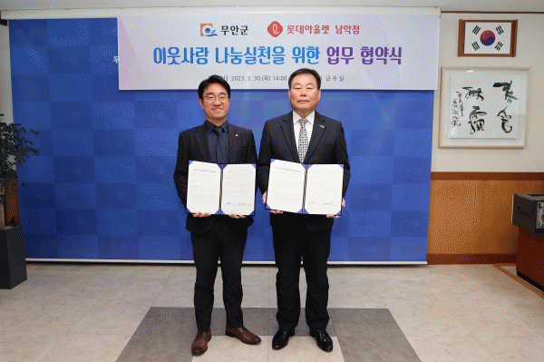 [¹Ìµð¾îÀü³² ±èÆÇ±¹ ±âÀÚ] Àü³² ¹«¾È±ºÀº Áö³ 30ÀÏ ·Ôµ¥¾Æ¿ï·¿ ³²¾ÇÁ¡°ú ÀÌ¿ô»ç¶û ³ª´® ½ÇõÀ» À§ÇÑ ¾÷¹«Çù¾àÀ» ü°áÇß´Ù. À̳¯ Çù¾àÀÇ ÁÖ¿ä ³»¿ëÀº º¹Áö Ãë¾à°èÃþ¿¡ »ýÇÊǰÀ» Á¤±â Áö¿øÇÏ°í ¹«¾È±ºÀÇ ½Å±Ô»ç¾÷ÀΡ®¿ì¸®µ¿³× º¹Áö±âµ¿´ë¡¦