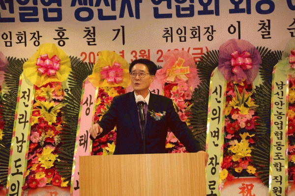 [¹Ìµð¾îÀü³² °í±Ô¼® ±âÀÚ] ½Å¾ÈõÀÏ¿°»ý»êÀÚ¿¬ÇÕȸÀå ÀÌ¡¤ÃëÀÓ½ÄÀÌ 3¿ù 24ÀÏ ¸ñÆ÷ ½Å¾ÈºñġȣÅÚ¿¡¼ ÀÓ¿ø ¹× õÀÏ¿° »ý»êÀÚ È¸¿ø 150¿©¸íÀÌ Âü¼®ÇÑ °¡¿îµ¥ °³ÃֵƴÙ. ¿¬ÇÕȸÀÇ ¹ßÀüÀ» À§ÇØ ¾ÕÀå¼ ¿Â Á¦5´ë ȫö±â ȸÀåÀÇ µÚ¸¦ À̾î Á¦¡¦
