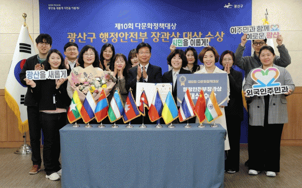 [¹Ìµð¾îÀü³² ±èÁ¤¿ì ±âÀÚ] ±¤ÁÖ ±¤»ê±¸°¡ ¿Ü±¹ÀÎÁֹΰúÀÇ ¼ÒÅëÀ» ±â¹ÝÀ¸·Î »ó»ý¡¤ÈÇÕÀÇ »çȸÅëÇÕ ±â¹ÝÀ» ¸¶·ÃÇÑ Á¤Ã¥ÀÇ ¼º°ú·Î Á¦10ȸ ´Ù¹®È Á¤Ã¥´ë»ó¿¡¼ ¿µ¿¹ÀÇ ´ë»óÀ» ¼ö»óÇß´Ù. ÇàÁ¤¾ÈÀüºÎ, ¿©¼º°¡Á·ºÎ µîÀÌ Âü¿©ÇÏ´Â ´Ù¹®È Á¤Ã¥¡¦