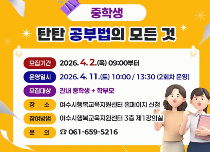 [¹Ìµð¾îÀü³² ÀüÇü¼º ±âÀÚ] ¿©¼ö½Ã°¡ ¿À´Â 4¿ù 11ÀÏ ¿©¼ö½ÃÇູ±³À°Áö¿ø¼¾ÅÍ¿¡¼ °ü³» ÁßÇлý°ú Çкθ𸦠´ë»óÀ¸·Î ¡®ÁßÇлý źź °øºÎ¹ýÀÇ ¸ðµç °Í¡¯ Ư°À» °³ÃÖÇÑ´Ù. À̹ø Ư°Àº À¯Æ©ºê¿Í SNS µî¿¡¼ ¡®°õ½Ü±³½Ç¡¯·Î ¾Ë·ÁÁø °øºÎ¹ý¡¤¡¦