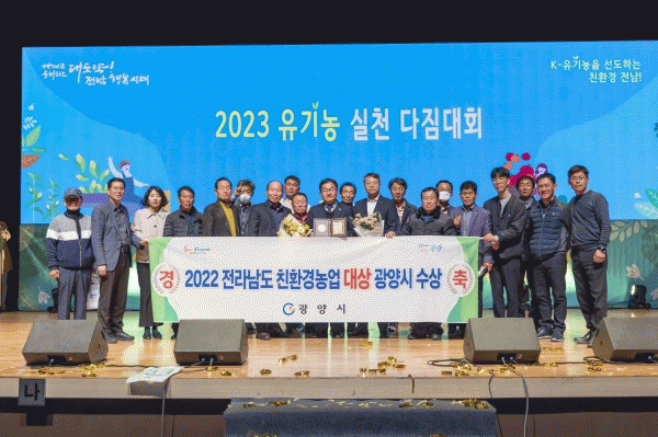 [¹Ìµð¾îÀü³² ÀÓ¼º¿Ï ±âÀÚ] ±¤¾ç½Ã°¡ 15ÀÏ Àü³²µµÃ»¿¡¼ °³ÃÖÇÑ ¡®2023³â À¯±â³ó ½Çõ ´ÙÁü´ëȸ¡¯¿¡¼ ÀÚÄ¡´Üü ºÐ¾ß ¡®Ä£È¯°æ³ó¾÷´ë»ó¡¯À» ¼ö»óÇß´Ù°í ¹àÇû´Ù. ½Ã´Â Áö³ 2007³âºÎÅÍ ÃÑ 7ȸ¿¡ °ÉÃÄ Ä£È¯°æ³ó¾÷´ë»ó Æò°¡¿¡¼ ¼ö»óÇßÀ¸¸ç ¡¦