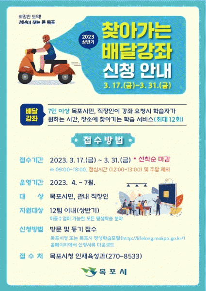 [¹Ìµð¾îÀü³² °í±Ô¼® ±âÀÚ] ¸ñÆ÷½Ã°¡ ÁֹΠ¸ÂÃãÇü Æò»ýÇнÀ ¼ºñ½º Á¦°øÀ» À§ÇØ 2023³â »ó¹Ý±â ã¾Æ°¡´Â ¹è´Þ°Á¸¦ ¿î¿µÇÑ´Ù. ¡®Ã£¾Æ°¡´Â ¹è´Þ°Á¡¯´Â 7ÀÎ ÀÌ»óÀÇ ¸ñÆ÷½Ã¹Î, °ü³» Á÷ÀåÀÎÀÌ °Á ¿äû½Ã, ÇнÀÀÚ°¡ ¿øÇÏ´Â ½Ã°£°ú Àå¼Ò¿¡¡¦