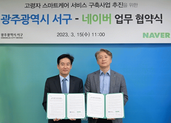 [¹Ìµð¾îÀü³² ±èÁ¤¿ì ±âÀÚ] ±¤ÁÖ±¤¿ª½Ã ¼±¸´Â 15ÀÏ ³×À̹ö¿Í °í·ÉÀÚ ½º¸¶Æ®ÄÉ¾î ¼ºñ½º ±¸Ãà»ç¾÷ ÃßÁøÀ» À§ÇÑ ¾÷¹«Çù¾àÀ» ü°áÇß´Ù. À̳¯ Çù¾à½Ä¿¡´Â ±èÀ̰ ¼±¸Ã»Àå°ú ³ª±ºÈ£ ³×À̹ö ÇコÄɾ±¸¼Ò ¼ÒÀåÀÌ Âü¼®ÇØ ÀΰøÁö´Éµ¹º½ ½Ã½ºÅÛ¡¦