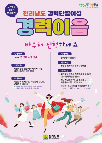 [¹Ìµð¾îÀü³² ÀüÇü¼º ±âÀÚ] ¿©¼ö½Ã´Â ÀÓ½Å, Ãâ»ê, À°¾Æ µî¿¡ µû¸¥ °æ·Â´ÜÀý ¿©¼ºµéÀ» À§ÇÑ ¡®°æ·ÂÀÌÀ½ ¹Ù¿ìó »ç¾÷¡¯À» ÃßÁøÇÑ´Ù. ¡®°æ·ÂÀÌÀ½ ¹Ù¿ìó »ç¾÷¡¯Àº ±¸Á÷¿©¼º¿¡°Ô µµ¼±¸ÀÔ, ¼ö°·á, ¸éÁ¢ Áغñ ºñ¿ë µîÀ¸·Î »ç¿ëÇÒ ¼ö ÀÖ´Â 50¡¦