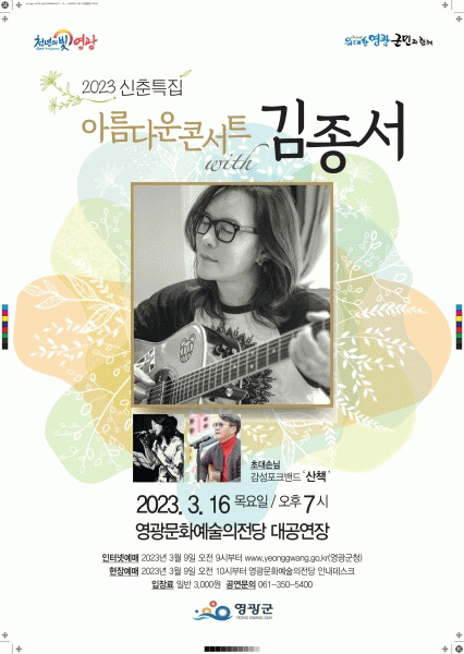 [¹Ìµð¾îÀü³² Á¦°¥´ëÁ¾ ±âÀÚ] ¿µ±¤±ºÀº ¿À´Â 3¿ù 16ÀÏ ¿ÀÈÄ 7½Ã¿¡ ¿µ±¤¹®È¿¹¼úÀÇÀü´ç ´ë°ø¿¬Àå¿¡¼ ½ÅÃáÆ¯Áý¡®¾Æ¸§´Ù¿î ÄܼƮ With ±èÁ¾¼¡¯°ø¿¬À» ÆîÄ£´Ù. ¿µ±¤¹®È¿¹¼úÀÇÀü´çÀº ¹®¿¹Ã¢ÀÛ µî ³ÐÀº ÀǹÌÀÇ ¹®È¸¦ ¸íĪ¿¡ Æ÷ÇÔÇÏ¸é¼ ¿µ¡¦