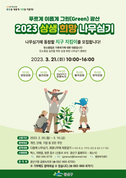 [¹Ìµð¾îÀü³² ±èÁ¤¿ì ±âÀÚ] ±¤ÁÖ ±¤»ê±¸°¡ ±âÈÄÀ§±â ´ëÀÀ, ÀÚ¿¬°ú »ó»ýÇϴ ź¼ÒÁ߸³ ±¤»êÀ» ¸ñÇ¥·Î »ó»ý¡¤Èñ¸Á ³ª¹« ½É±â¸¦ º»°Ý ÃßÁøÇÑ´Ù. Áö±¸ ¿Â³È·Î ÀÎÇÑ ±â·ÏÀûÀÎ Æø¿°, Æø¿ì, °¡¹³, ¹Ì¼¼¸ÕÁö µî ´Ù¾çÇÑ ±âÈĺ¯È¿¡ µµ½Ã½£, ³ìÁö¡¦