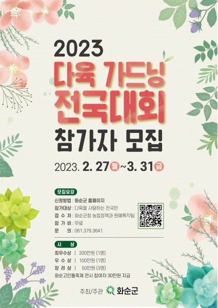 [¹Ìµð¾îÀü³² Á¦°¥´ëÁ¾ ±âÀÚ] ȼø±ºÀº 3¿ù 31ÀϱîÁö¡®2023 ´ÙÀ° °¡µå´× Àü±¹´ëȸ¡¯Âü°¡ÀÚ¸¦ ¸ðÁýÇÑ´Ù°í ¹àÇû´Ù. ȼø±ºÀº ¡®º½²É°ú ÇÔ²²Çϴ ȼø °íÀε¹ ÃàÁ¦¡¯¿Í ¹Ý·Á½Ä¹° °æ¿¬´ëȸ¸¦ ¿¬°èÇØ ¼º°øÀûÀÎ Áö¿ªÃàÁ¦¸¦ ÁغñÇϰí ÀÖ´Ù. ´ë¡¦