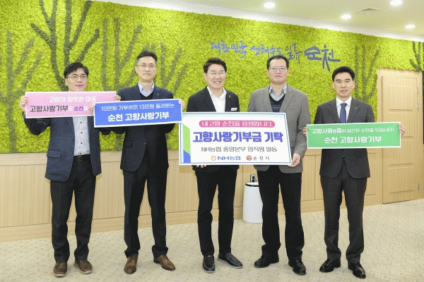 [¹Ìµð¾îÀü³² ÀÓ¼º¿Ï ±âÀÚ] NH³óÇù ¼øÃµ½ÃÁöºÎ ¹× ³óÇùÁß¾Óȸ ÀÓÁ÷¿øµéÀÌ 6ÀÏ ¼øÃµ½Ã °íÇâ»ç¶û±âºÎÁ¦¿¡ µ¿ÂüÇß´Ù. À̹ø ¼øÃµ½Ã °íÇâ»ç¶û±âºÎ±Ý ±âŹ½Ä¿¡´Â Á¶Ã¢Çö ³óÇùÁß¾Óȸ »óÈ£±ÝÀ¶¸®½ºÅ©°ü¸®ºÎÀå, ³óÇùÀºÇà Á¾ÇÕ±âȹºÎ ±èÆÇ¿í ±¹Àå,¡¦