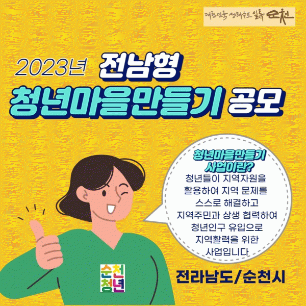 [¹Ìµð¾îÀü³² ÀÓ¼º¿Ï ±âÀÚ] ¼øÃµ½Ã´Â Àü¶ó³²µµ¿¡¼ ÁÖ°üÇÏ´Â ¡®23³â Àü³²Çü û³â¸¶À» ¸¸µé±â »ç¾÷¡¯¿¡ Âü¿©ÇÒ Ã»³â´Üü¡¤±â¾÷À» ¿À´Â 17ÀϱîÁö ¸ðÁýÇÑ´Ù. À̹ø °ø¸ð»ç¾÷Àº û³âµéÀÌ Áö¿ªÀÚ¿øÀ» Ȱ¿ëÇØ Áö¿ªÀÇ ¹®Á¦¸¦ ½º½º·Î ÇØ°áÇϰí Áö¿ª¡¦