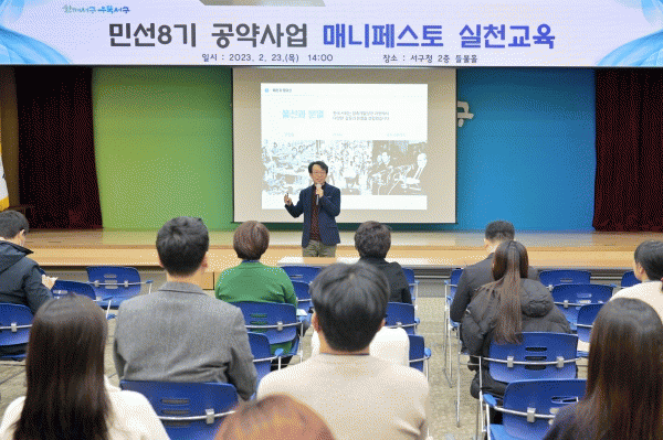 [¹Ìµð¾îÀü³² ±èÁ¤¿ì ±âÀÚ] ±¤ÁÖ ¼±¸°¡ Áö³ 23ÀÏ ¼±¸Ã» 2Ãþ µéºÒȦ¿¡¼ Çѱ¹ ¸Å´ÏÆä½ºÅä½Çõº»ºÎ À̱¤Àç »ç¹«ÃÑÀåÀ» ÃʺùÇØ ¹Î¼±8±â ¸Å´ÏÆä½ºÅä Æ¯°À» °³ÃÖÇß´Ù. À̹ø Ư°Àº °ø¾à»ç¾÷ ÆÀÀå°ú ´ã´çÀÚ µî Á÷¿ø 50¿©¸íÀÌ Âü¼®ÇÑ °¡¿îµ¥¡¦