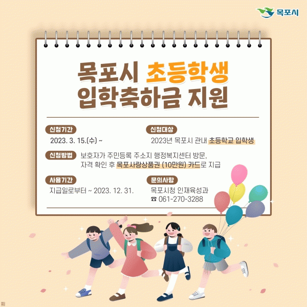 [¹Ìµð¾îÀü³² °í±Ô¼® ±âÀÚ] ¸ñÆ÷½Ã´Â ¿ÃÇØºÎÅÍ ÃʵîÇб³ ÀÔÇлý °¡Á¤¿¡ ÀÔÇÐÃàÇϱÝÀ» Áö¿øÇÑ´Ù°í ¹àÇû´Ù. ¿À´Â 3¿ù 15ÀϺÎÅÍ 4¿ù 28ÀϱîÁö ÁýÁß ½Åû±â°£À» ÅëÇØ ÀÔÇÐÃàÇϱÝÀ» Áö±ÞÇÒ °èȹÀÌ¸ç ´ë»óÀÚ Àü¿øÀÌ Áö¿ø ÇýÅÃÀ» ´©¸± ¼ö ÀÖµµ·Ï¡¦