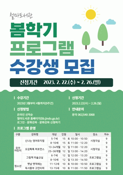 [¹Ìµð¾îÀü³² Á¦°¥´ëÁ¾ ±âÀÚ] Áøµµ±º ö¸¶µµ¼°ü¿¡¼ ¿À´Â 3¿ù 4ÀϺÎÅÍ 4¿ù 30ÀϱîÁö ¿µÀ¯¾Æ¿Í û¼Ò³âÀ» ´ë»óÀ¸·Î º½Çб⠵¶¼ ¹®È ÇÁ·Î±×·¥À» ¿î¿µÇÑ´Ù. ÇÁ·Î±×·¥Àº µ¶¼¡¤¹®È¡¤¿¹¼ú µî ´Ù¾çÇÑ ÁÖÁ¦ÀÇ 5°³ °Á·ΠÀç·áºñ´Â °³ÀÎ ºÎ´ãÀÌ¡¦