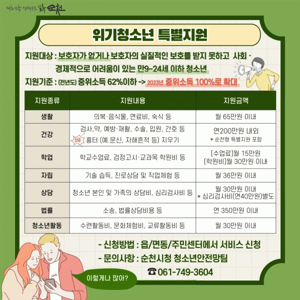 [¹Ìµð¾îÀü³² ÀÓ¼º¿Ï ±âÀÚ] ¼øÃµ½Ã´Â À§±âû¼Ò³âÀÇ °Ç°ÇÑ ¼ºÀå°ú ÀÚ¸³À» Áö¿øÇϱâ À§ÇØ À§±âû¼Ò³â Ưº°Áö¿ø ´ë»óÀÚ¸¦ 3¿ù 31ÀϱîÁö ¸ðÁýÇÑ´Ù°í ¹àÇû´Ù. Áö¿ø ´ë»óÀº º¸È£ÀÚ°¡ ¾ø°Å³ª º¸È£ÀÚÀÇ ½ÇÁúÀûÀÎ º¸È£¸¦ ¹ÞÁö ¸øÇÏ°í »çȸ¡¤°æÁ¦Àû¡¦