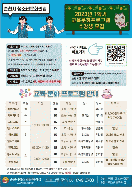 [¹Ìµð¾îÀü³² ÀÓ¼º¿Ï ±âÀÚ] ¼øÃµ½Ã´Â û¼Ò³â¹®ÈÀÇÁý 1Çб⠱³À°¹®ÈÇÁ·Î±×·¥À» ¿À´Â 3¿ù 6ÀϺÎÅÍ 7¿ù 1ÀϱîÁö 4°³¿ù°£ ÁÖ 1ȸ 2½Ã°£¾¿ ¿î¿µÇÑ´Ù. û¼Ò³â¹®ÈÀÇÁýÀº ¸Å³â °ü³» û¼Ò³âÀ» ´ë»óÀ¸·Î û¼Ò³âµéÀÇ ÀھƽÇÇö°ú Áú ³ôÀº ¿©°¡È°µ¿¡¦