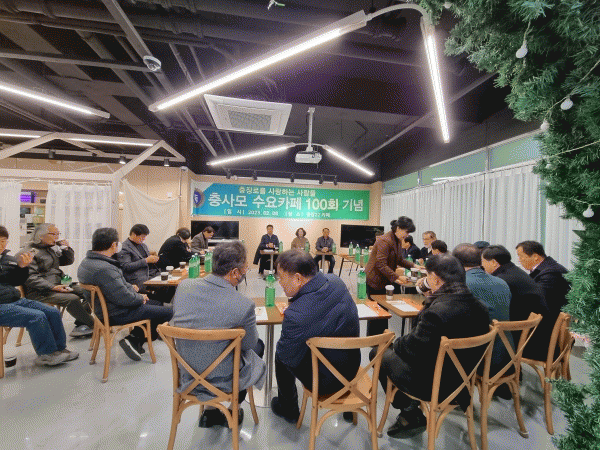 [¹Ìµð¾îÀü³² ±èÁ¤¿ì ±âÀÚ] ±¤ÁÖ µ¿±¸ ÃæÀ嵿Àº Áö³ 8ÀÏ ¹®È¿¹¼úº¹ÇÕ°ø°£ ÃæÀå22¿¡¼ ¡®Á¦100ȸ Ãæ»ç¸ð ¼ö¿äÄ«Æä¡¯¸¦ °³ÃÖÇß´Ù°í ¹àÇû´Ù. ¡®Ãæ»ç¸ð¡¯´Â Áö³ 2021³â ¿À¹æ¿ë Ä«ÆäÁö±â¸¦ Áß½ÉÀ¸·Î ÃæÀå·Î¸¦ »ç¶ûÇÏ´Â »ç¶÷µé 10¿©¸íÀÌ ¸ð¿©¡¦