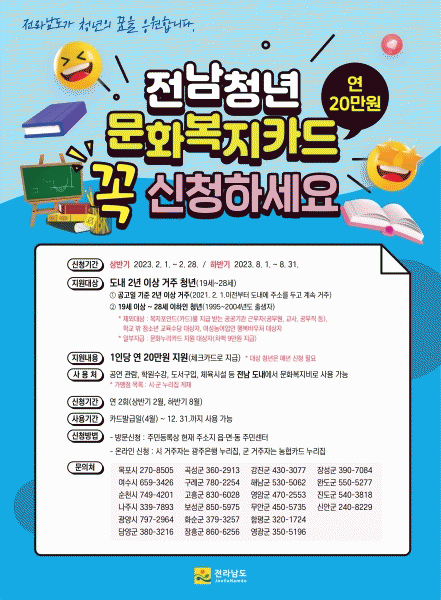 [¹Ìµð¾îÀü³² Á¦°¥´ëÁ¾ ±âÀÚ] º¸¼º±ºÀº Áö¿ª û³â¿¡°Ô 20¸¸¿øÀÇ ¹®Èº¹Áöºñ¸¦ Áö¿øÇÏ´Â ¡®Àü³²Ã»³â ¹®Èº¹ÁöÄ«µå¡¯ Á¢¼ö¸¦ ½ÃÀÛÇß´Ù°í ¹àÇû´Ù. ¡®2023³â Àü³²Ã»³â ¹®Èº¹ÁöÄ«µå Áö¿ø»ç¾÷¡¯Àº Àü¶ó³²µµ¿¡ °ÅÁÖÇϴ û³âÀ» ´ë»óÀ¸·Î °ø¿¬ ¡¦