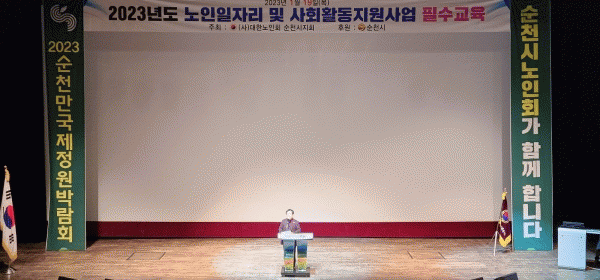 [¹Ìµð¾îÀü³² ÀÓ¼º¿Ï ±âÀÚ] ¼øÃµ½Ã´Â Áö³ 19ÀÏ ´ëÇѳëÀÎȸ¼øÃµÁöȸ ÁÖ°üÀ¸·Î ¼øÃµ¹®È¿¹¼úȸ°ü¿¡¼ 2023³â ³ëÀÎÀÏÀÚ¸®»ç¾÷ Âü¿©ÀÚ ±³À°À» °¡Áö¸ç ¿ÃÇØ ³ëÀÎÀÏÀÚ¸® »ç¾÷À» Ȱ±âÂ÷°Ô ½ÃÀÛÇß´Ù. À̳¯ ±³À°¿¡´Â ³ëÀÎÀÏÀÚ¸® Âü¿©ÀÚ ¾î¸£½Å µî¡¦