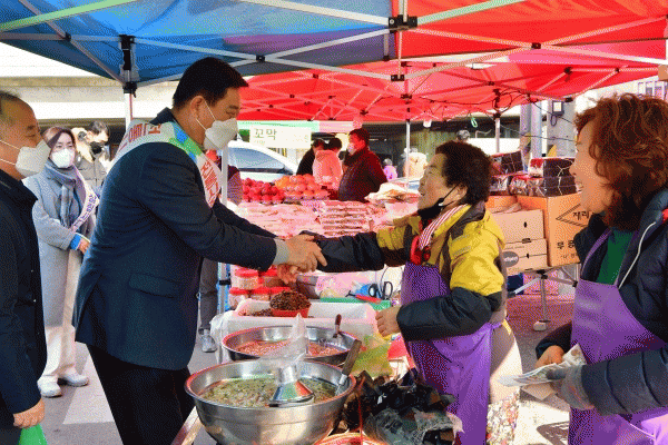 [¹Ìµð¾îÀü³² ±è±âö ±âÀÚ] À强±ºÀÌ ¼³ ¸íÀýÀ» ¾ÕµÐ 19ÀÏ ÀüÅë½ÃÀå »ì¸®±â¿¡ ³ª¼¹´Ù. À̳¯ ±ºÀº ±èÇÑÁ¾ À强±º¼ö¿Í »çȸ´Üü, À¯°ü±â°ü, °øÁ÷ÀÚ µî 150¿©¸íÀÌ Âü¿©ÇÑ °¡¿îµ¥ Ȳ·æ½ÃÀå¿¡¼ À庸±â Çà»ç¸¦ °¡Á³´Ù. Âü°¡ÀÚµéÀº ¹Ì¸® ÁغñÇÑ¡¦