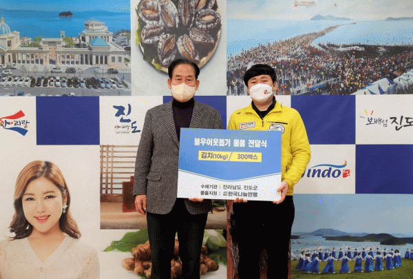 [¹Ìµð¾îÀü³² Á¦°¥´ëÁ¾ ±âÀÚ] Çѱ¹³ª´®¿¬¸ÍÀÌ ÃÖ±Ù Áøµµ±ºÃ»À» ¹æ¹®ÇØ ±èÄ¡ 300¹Ú½ºÀÇ ¹°Ç°À» ±âŹÇß´Ù. Çѱ¹³ª´®¿¬¸ÍÀº 1992³â Ãë¾à°èÃþ Áö¿øÀ» ¸ñÀûÀ¸·Î ¼³¸³µÈ ºñ¿µ¸® »ç´Ü¹ýÀÎÀ¸·Î ¹«·á±Þ½Ä »ç¾÷°ú »ýȰ¿©°Ç °³¼± »ç¾÷ µî ±¹³»¡¤¿Ü µû¡¦