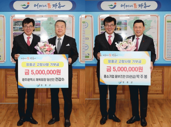 [¹Ìµð¾îÀü³² Á¦°¥´ëÁ¾ ±âÀÚ] Àü³² ÀåÈﱺ ÃâÇâ ÀλçµéÀÇ °íÇâ»ç¶û±âºÎ±Ý ±âŹ Çà·ÄÀÌ À̾îÁö°í ÀÖ´Ù. ÀåÈﱺÀº Áö³ 17ÀÏ Àü°©¼ö ±¤ÁÖ±¤¿ª½Ã üÀ°È¸Àå ´ç¼±Àΰú ¹ÚÁÖºÀ Áß¼Ò±â¾÷ ¿ÈºÎÁÀÌ ÀåÈﱺÀ» ¹æ¹®ÇØ °íÇâ»ç¶û±âºÎ±ÝÀ» Àü´ÞÇÏ´Â ¡¦